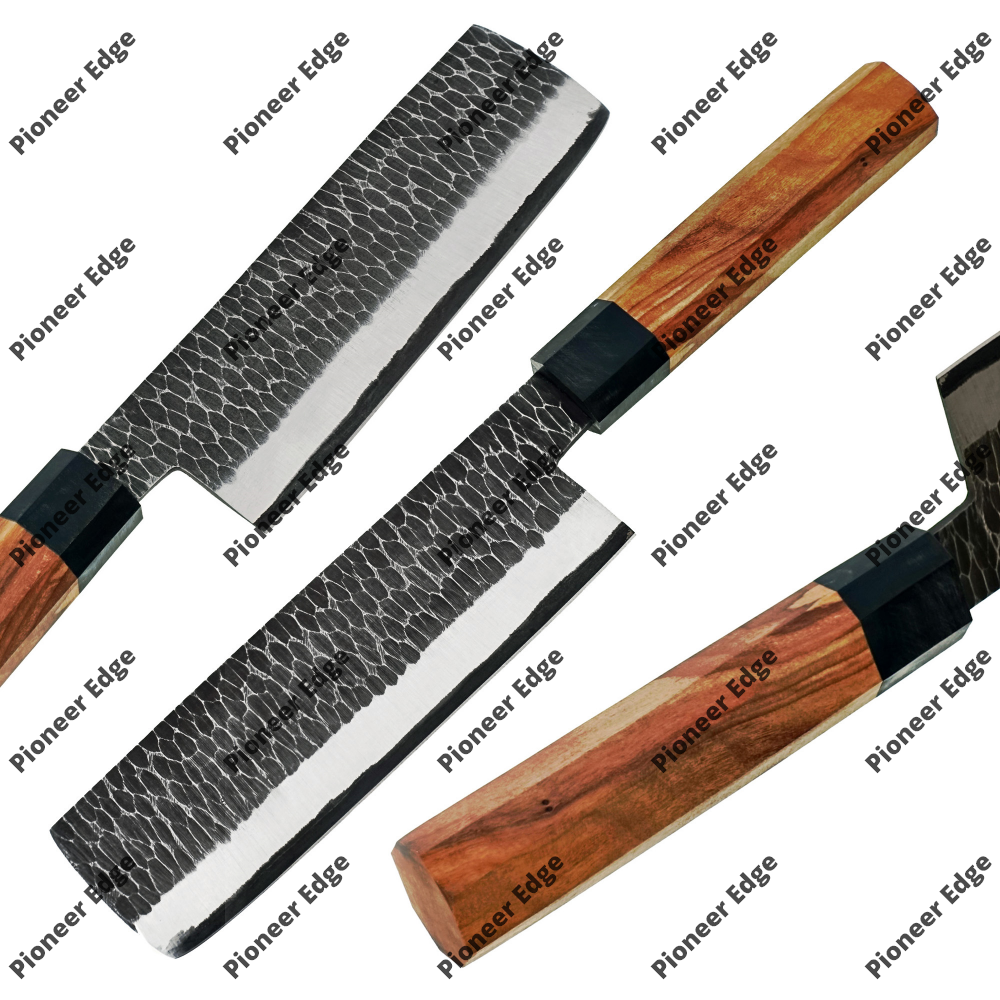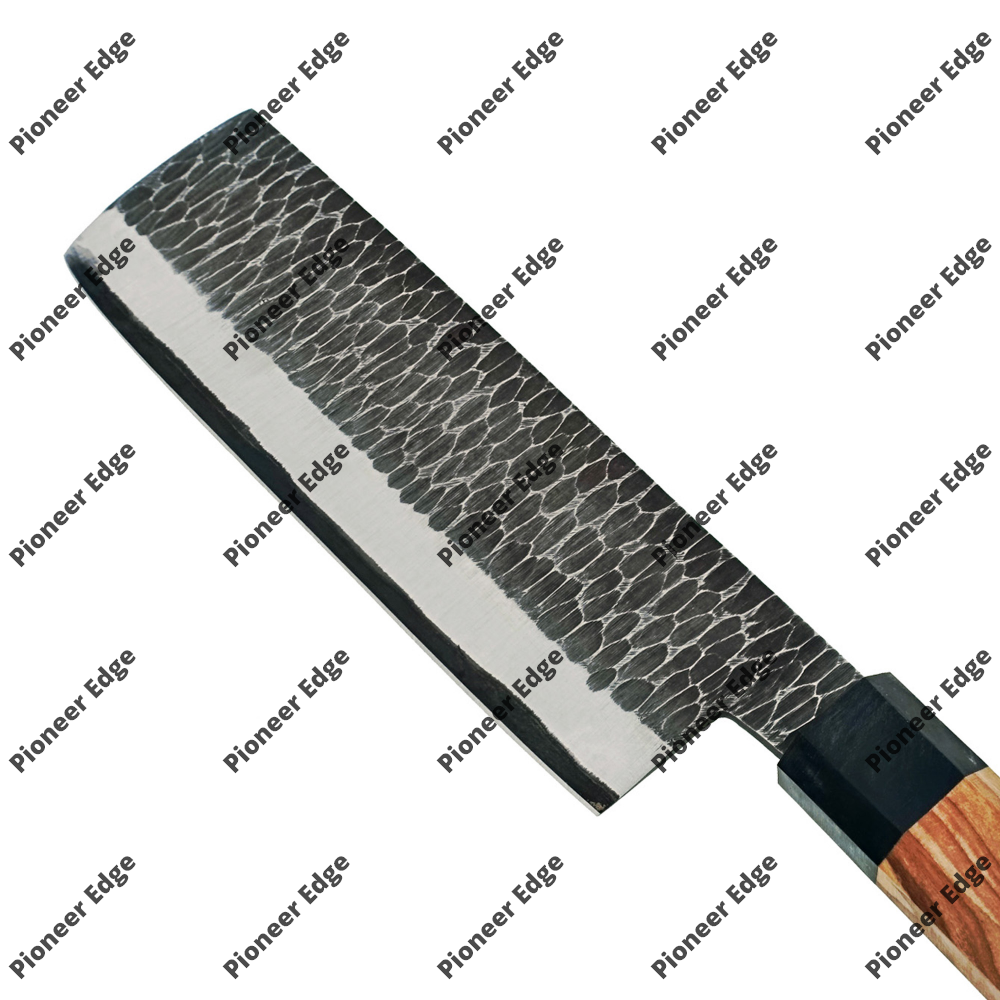 * **Primary Tags:** Hand-forged, Nakiri Knife, Japanese Vegetable Cleaver, Tsuchime Finish, Damascus Steel (if applicable), Professional Chef Knife.