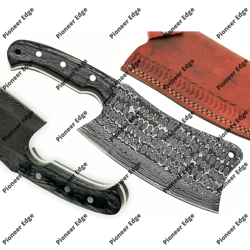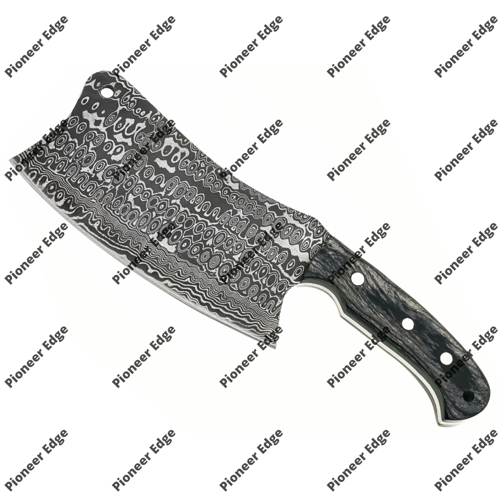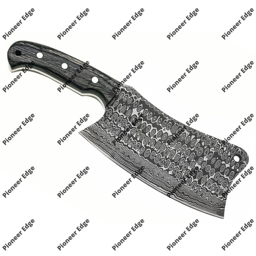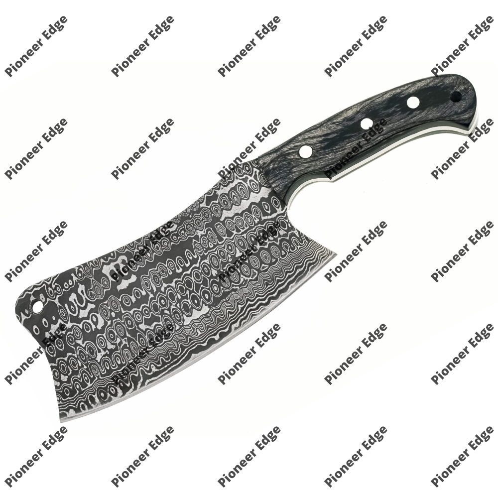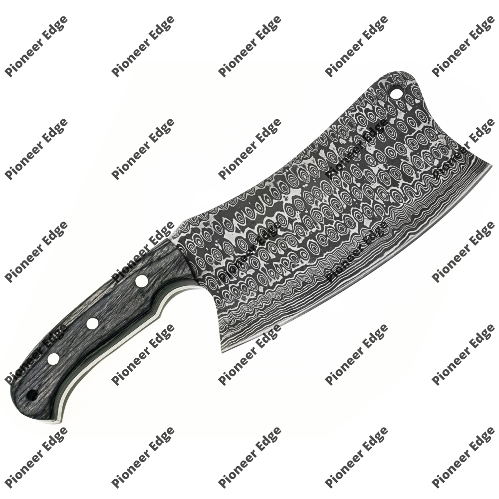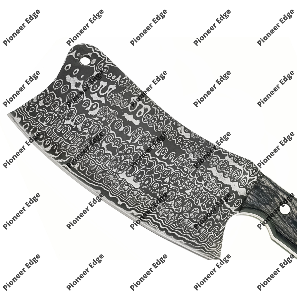 Heavy-duty professional meat cleaver that combines raw chopping power with the intricate artistry of high-end blade smithing.