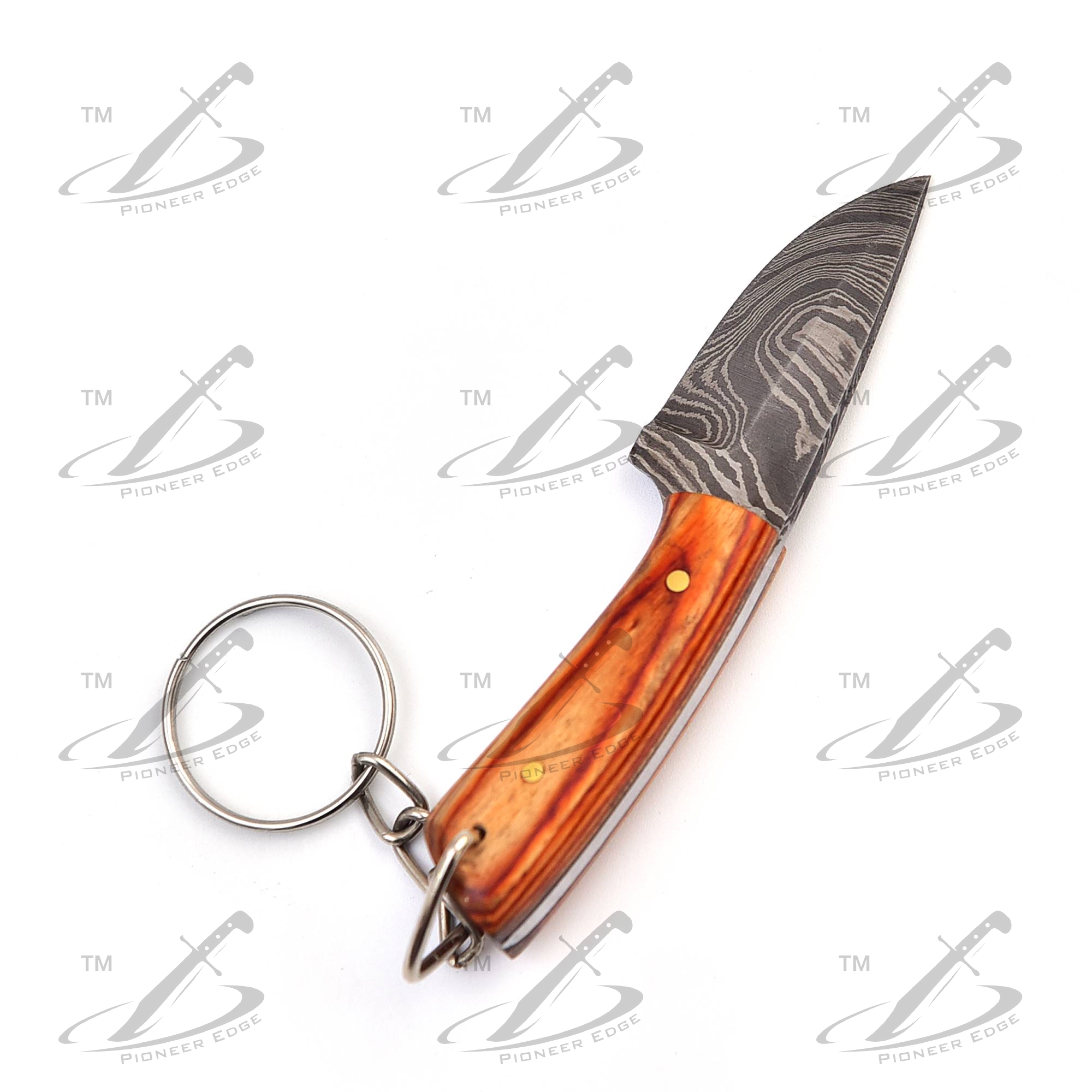 *#DamascusSteel #MiniatureKnife #SkinnerBlade #WoodHandle #HandmadeKeychain #EDCCollection #ArtisanForged #PocketTool #KnifeArt*