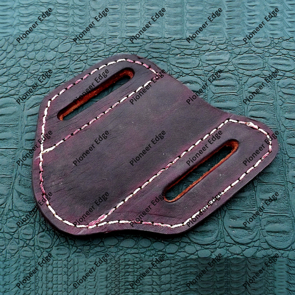 Handcrafted leather belt sheath is a robust and functional accessory designed for secure, horizontal-style carry. Featuring a deep plum or dark burgundy finish, it combines traditional leatherworking techniques with a practical design for everyday utility.