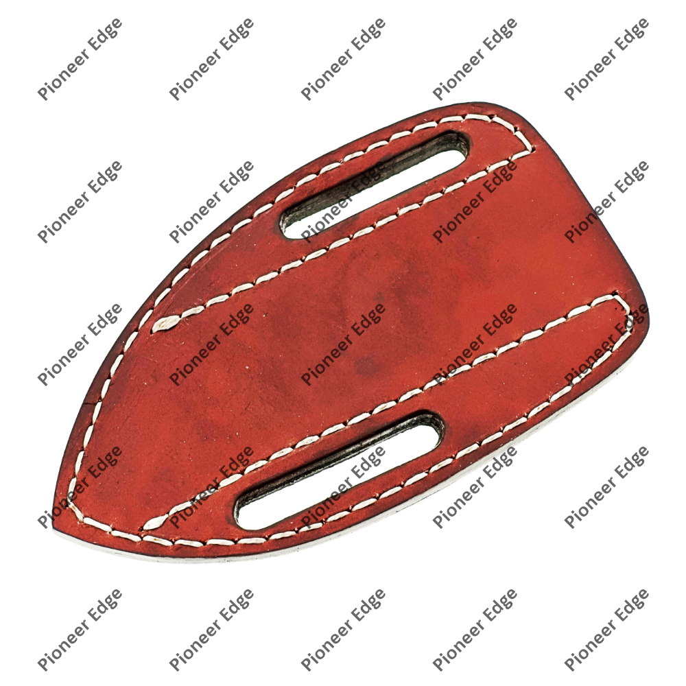 The striking contrast between the rich reddish-brown leather and the heavy-duty white stitching makes this a standout accessory. Built to withstand the elements while maintaining a slim, body-hugging profile, it’s the ideal companion for camping, hunting, or everyday utility tasks.