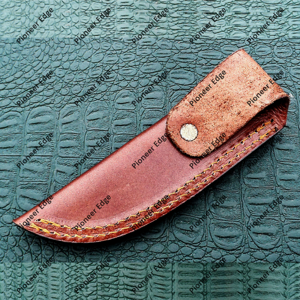 * **Snap-Closure Retention:** Features a fold-over leather flap with a **sturdy metal snap fastener**, providing an extra layer of security to prevent the knife from sliding out.