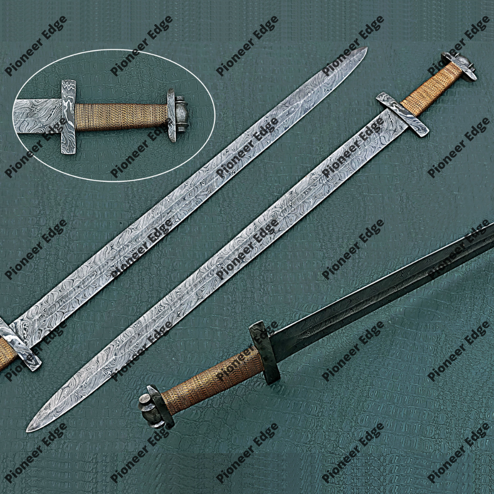 This Viking sword is a high-tier collector’s item that honors the heritage of the Northmen. The use of premium materials—from the layered Damascus steel to the intricate wire wrapping—makes it a standout display piece. It balances historical authenticity with the refined finish of modern custom bladesmithing, making it an ideal flagship for any specialized collection.